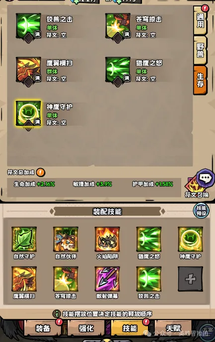 猎人生存天赋技能: