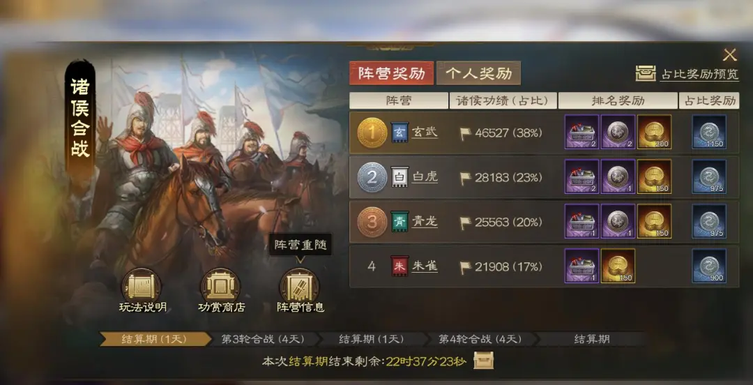这个阶段比较大的战斗活动就是悬赏城,从悬赏城刷更多战功的角度来看,依然是四队比较有优势。就像前面说的那样,前期资源非常不足,将资源留给前面四个更强的队伍,而不是浪费在后面比较弱的五六七队,相对更有性价比。